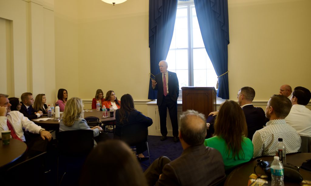 WASHINGTON – U.S. Senator John Cornyn (R-TX) met with Denton Chamber of Commerce members today to discuss the provisions in the Working Families Tax Cuts Act, also known as the One Big Beautiful Bill, that are making life more affordable for North Texas families and the Trump administration’s work to secure the border and reverse Biden-era open border policies that allowed millions of unvetted illegal immigrants into our nation. See photo below.