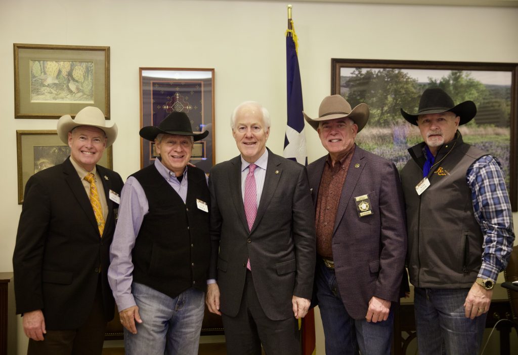 WASHINGTON – U.S. Senator John Cornyn (R-TX) met today with the President of the Sheriffs’ Association of Texas, Chambers County Sheriff Brian Hawthorne, Collin County Sheriff Jim Skinner, Brooks County Sheriff Benny Martinez, and the President of the National Sheriffs’ Association, Sheriff Chris West, to discuss expanding law enforcement access to emerging technologies, improving emergency response efforts in rural communities, and ensuring they have the resources needed to secure our homeland and protect Texans. See photo attached and below.